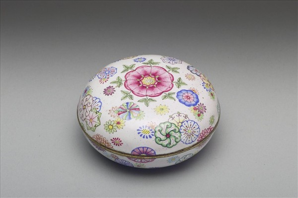 銅胎畫琺瑯白地彩花圓盒