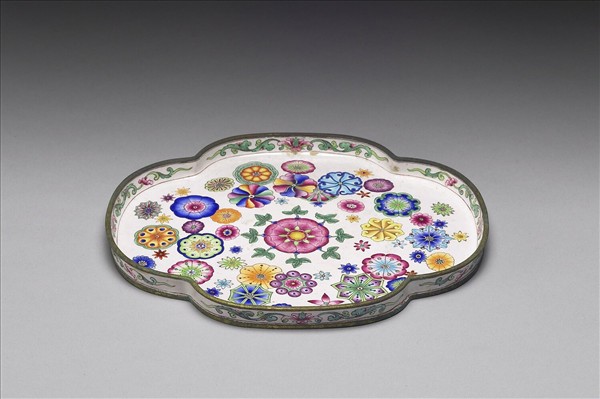 銅胎畫琺瑯海棠式盤
