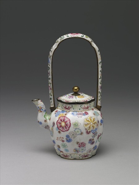 銅胎畫琺瑯皮球花紋提梁壺