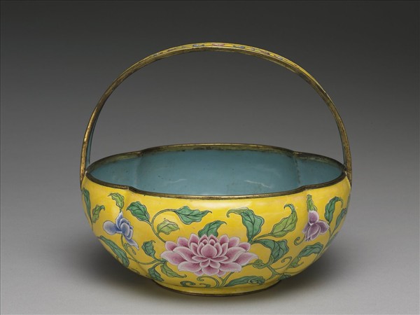 銅胎畫琺瑯花籃