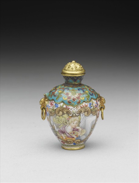 掐絲琺瑯兼畫琺瑯西洋人物圖雙耳鼻煙壺