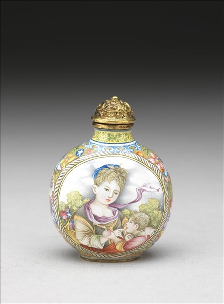 銅胎畫琺瑯西洋母子圖鼻煙壺
