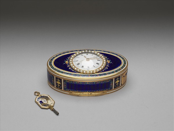 銅胎琺瑯嵌珠鑲錶鼻煙盒