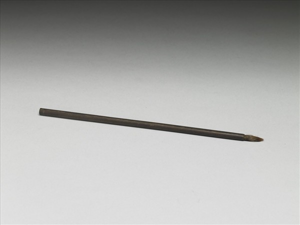 棕色毫毛筆,鋒短。筆管以深黑色木製成,表面無紋飾。