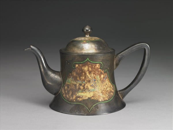 銀胎畫琺瑯山水圖壺