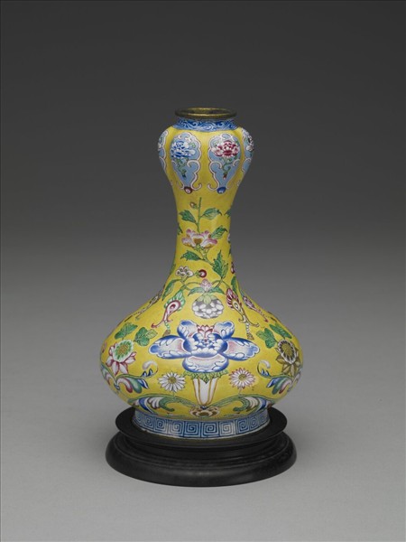 銅胎畫琺瑯黃地花卉紋蒜頭瓶