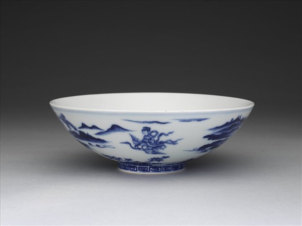 青花山水仙人圖碗