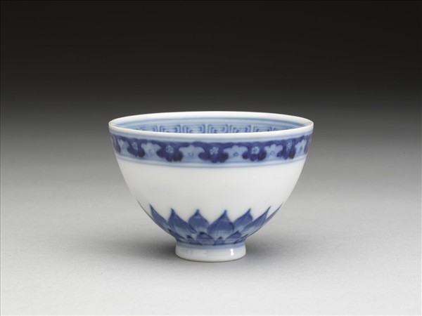 青花幾何花卉紋杯