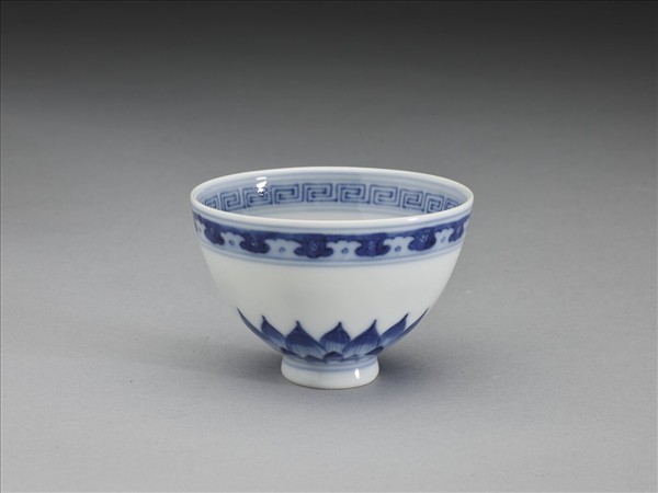 青花幾何花卉紋杯