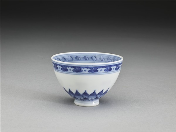 青花幾何花卉紋杯