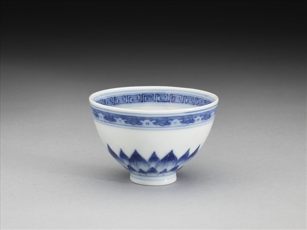 青花幾何花卉紋杯