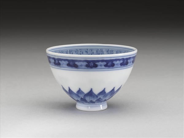 青花幾何花卉紋杯