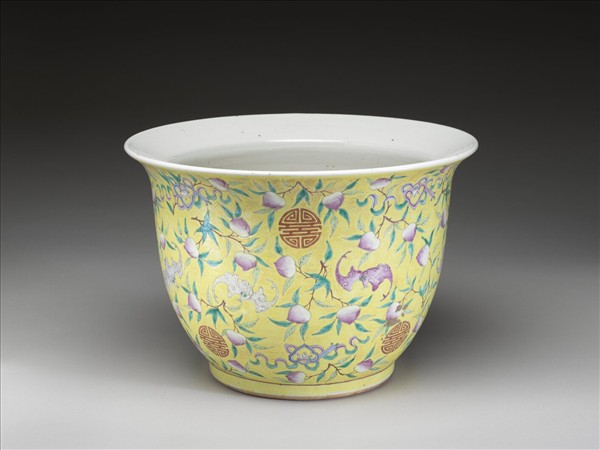 粉彩黃地福壽紋花盆