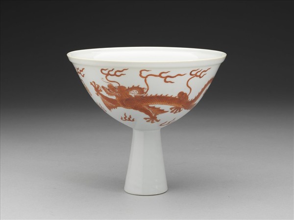 白瓷描紅雙龍紋高足碗