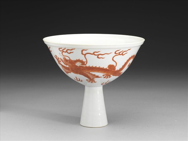 白瓷描紅雙龍紋高足碗