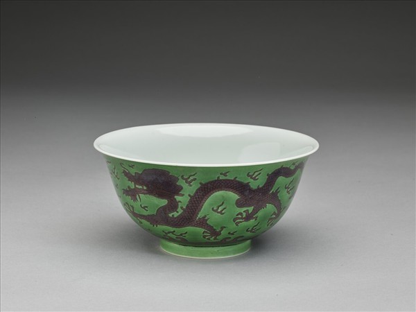 綠地赭彩龍紋碗