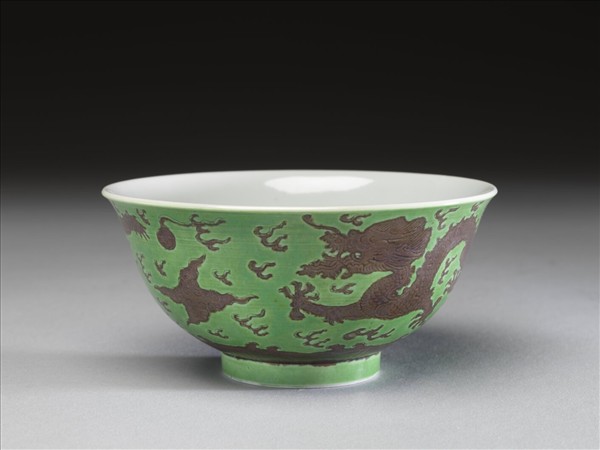 綠地赭彩龍紋碗