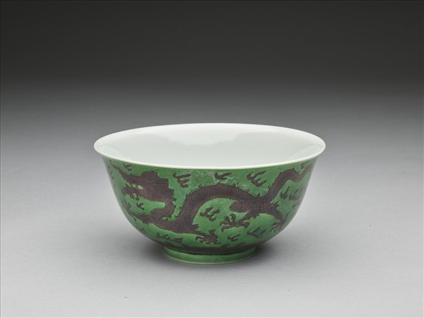 綠地赭彩龍紋碗
