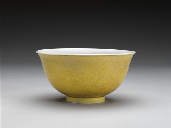 黃釉龍紋白裡碗
