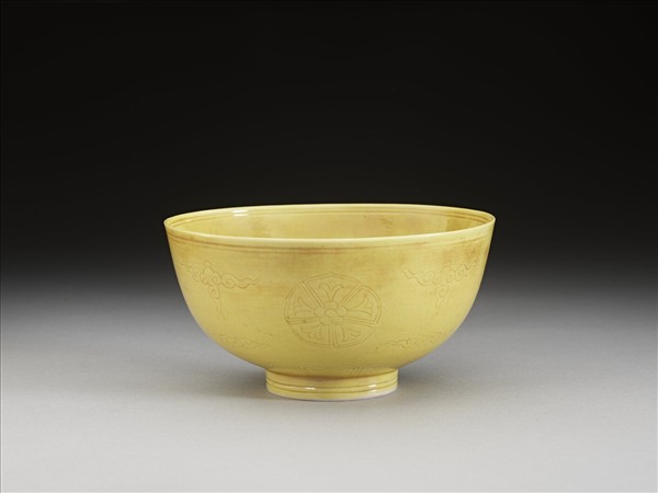 黃釉暗花碗
