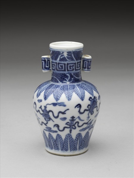 青花暗八仙紋貫耳瓶