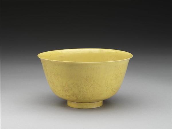 黃釉番蓮紋碗
