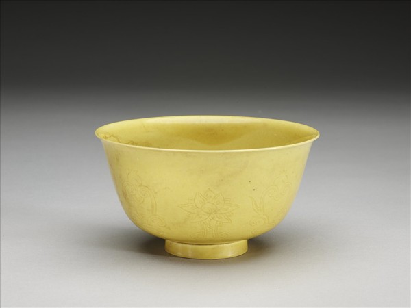 黃釉番蓮紋碗