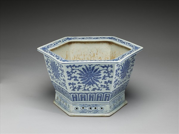 青花番蓮紋六方花盆