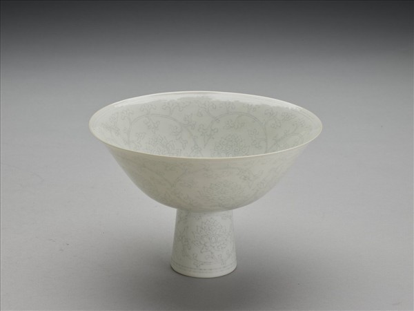 白瓷暗花高足碗