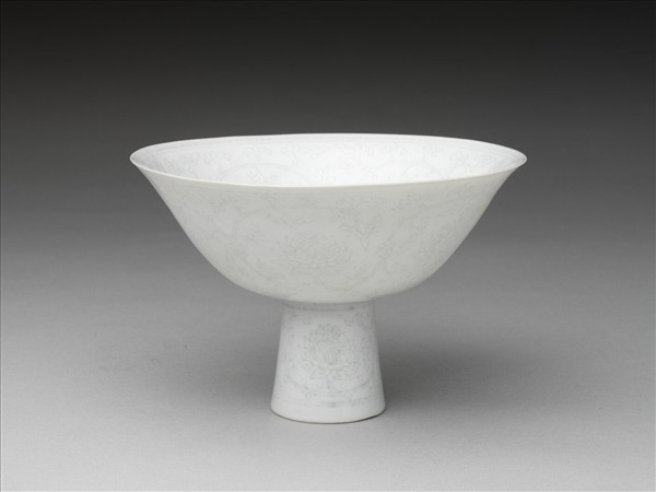 白瓷暗花高足碗