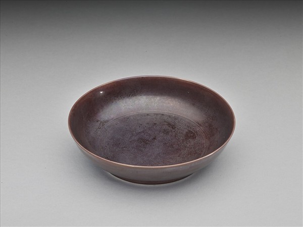 茄皮紫釉桃實紋盤