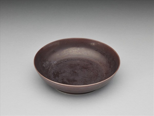 茄皮紫釉桃實紋盤