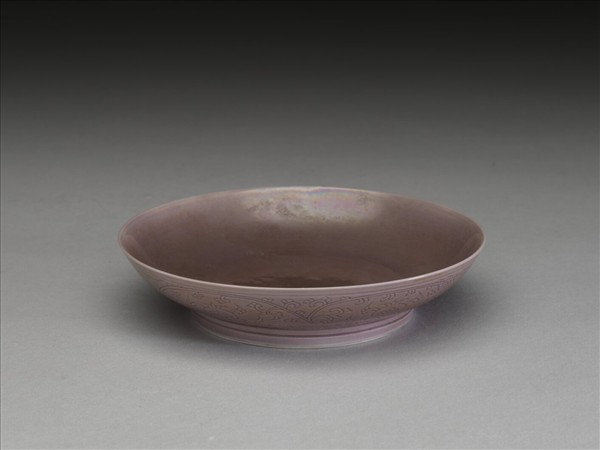 茄皮紫釉石榴紋盤