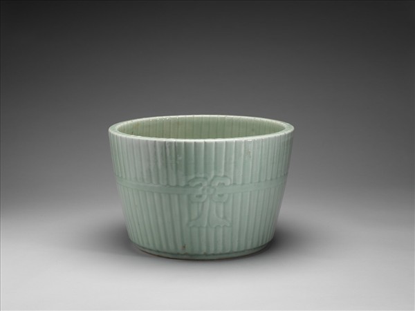 青瓷竹節紋花盆