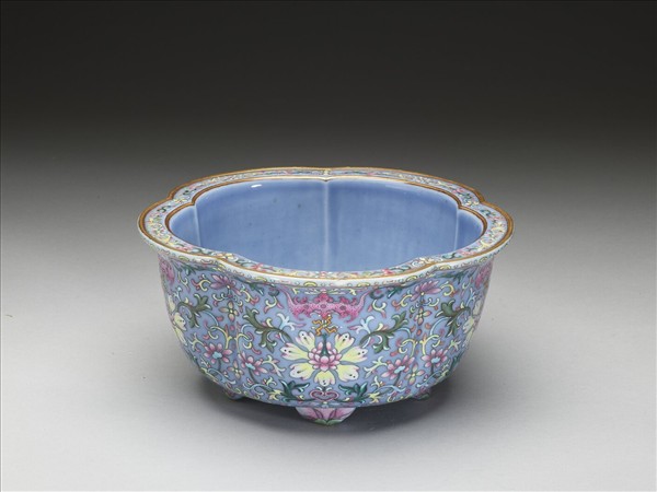 粉彩花卉紋梅花式花盆