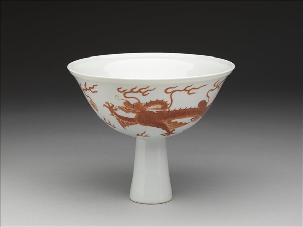 白瓷描紅雙龍紋高足碗