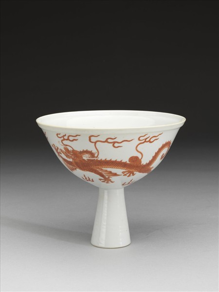 白瓷描紅雙龍紋高足碗