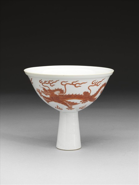 白瓷描紅雙龍紋高足碗