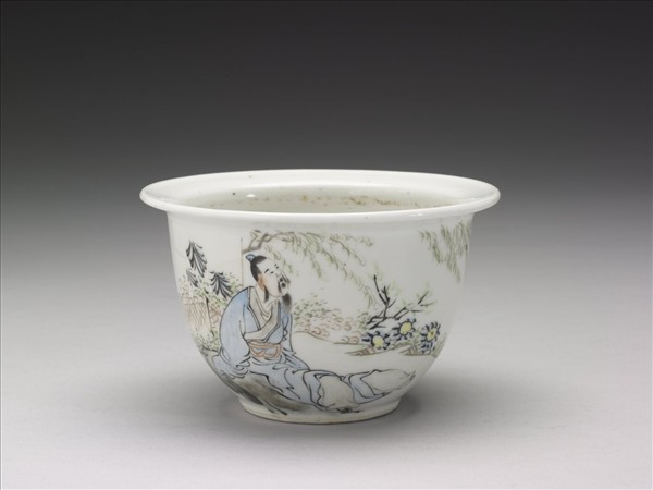 粉彩〈飲酒〉詩意圖花盆