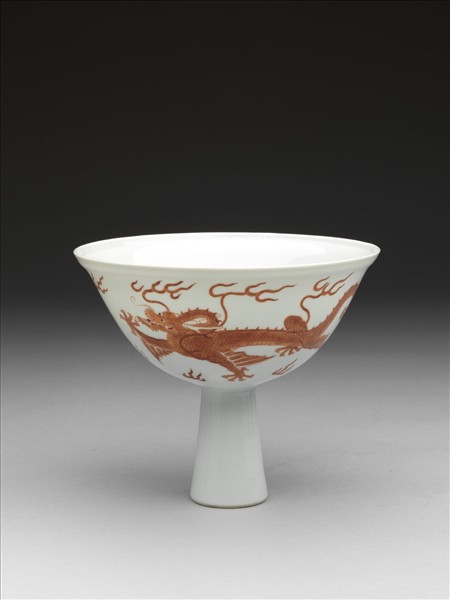 白瓷描紅雙龍紋高足碗