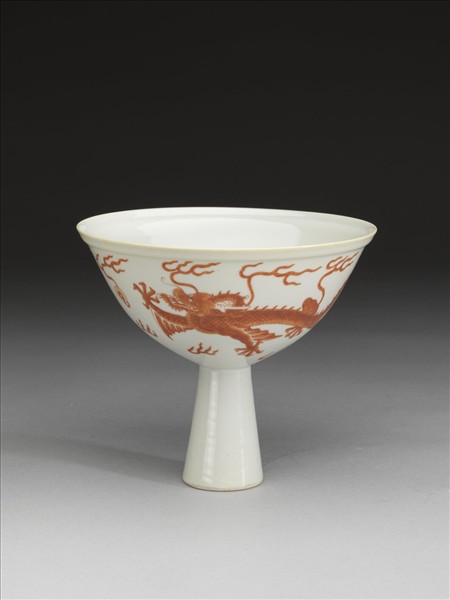白瓷描紅雙龍紋高足碗