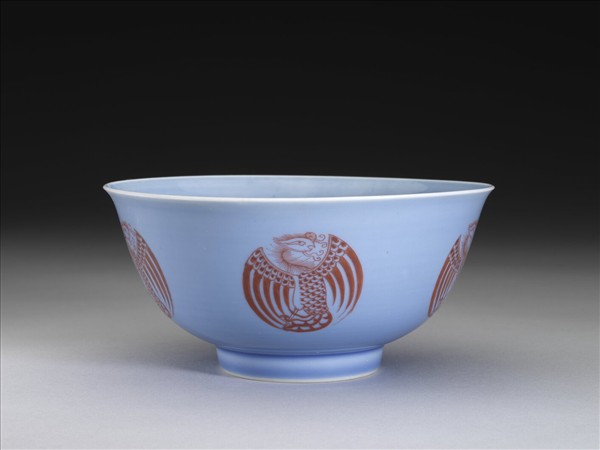 藍釉描紅團鳳紋碗