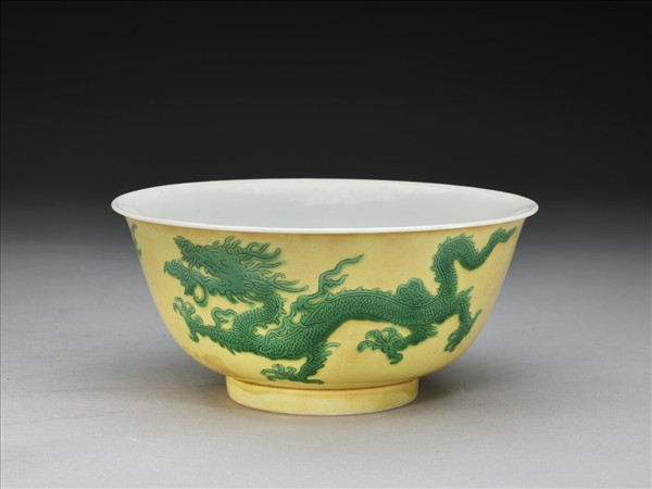 黃釉綠彩雙龍戲珠紋碗