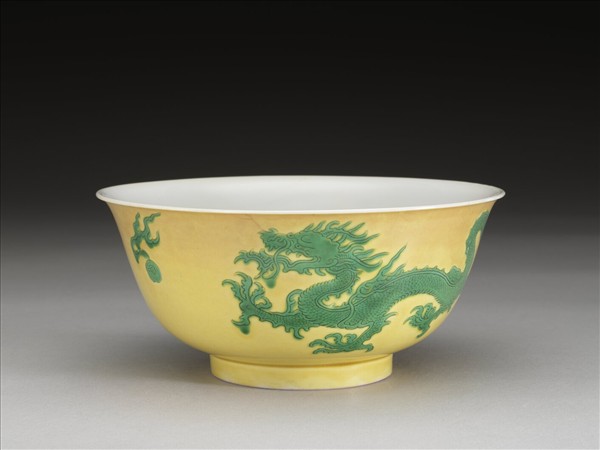 黃釉綠彩雙龍戲珠紋碗