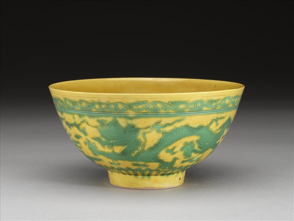 黃釉綠彩龍鳳紋碗