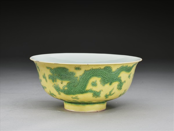 黃釉綠彩雙龍戲珠紋碗