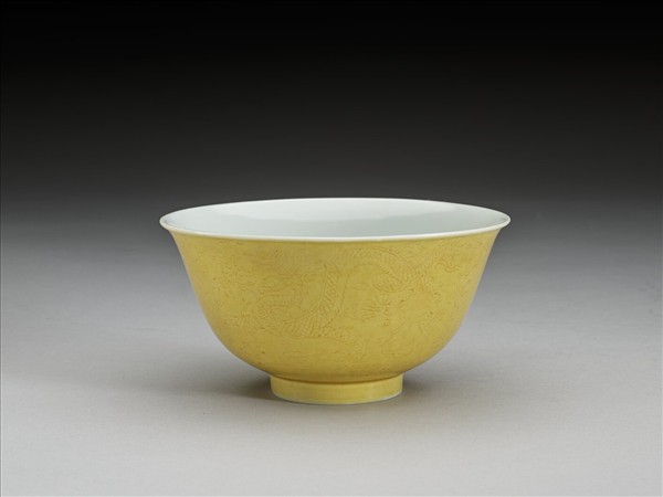 黃釉龍紋白裡碗