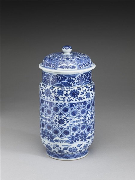 青花波濤番蓮紋蓋罐
