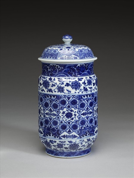 青花波濤番蓮紋蓋罐
