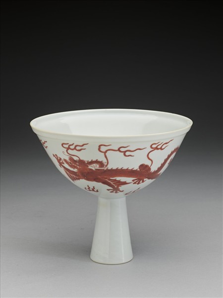 描紅龍紋高足碗